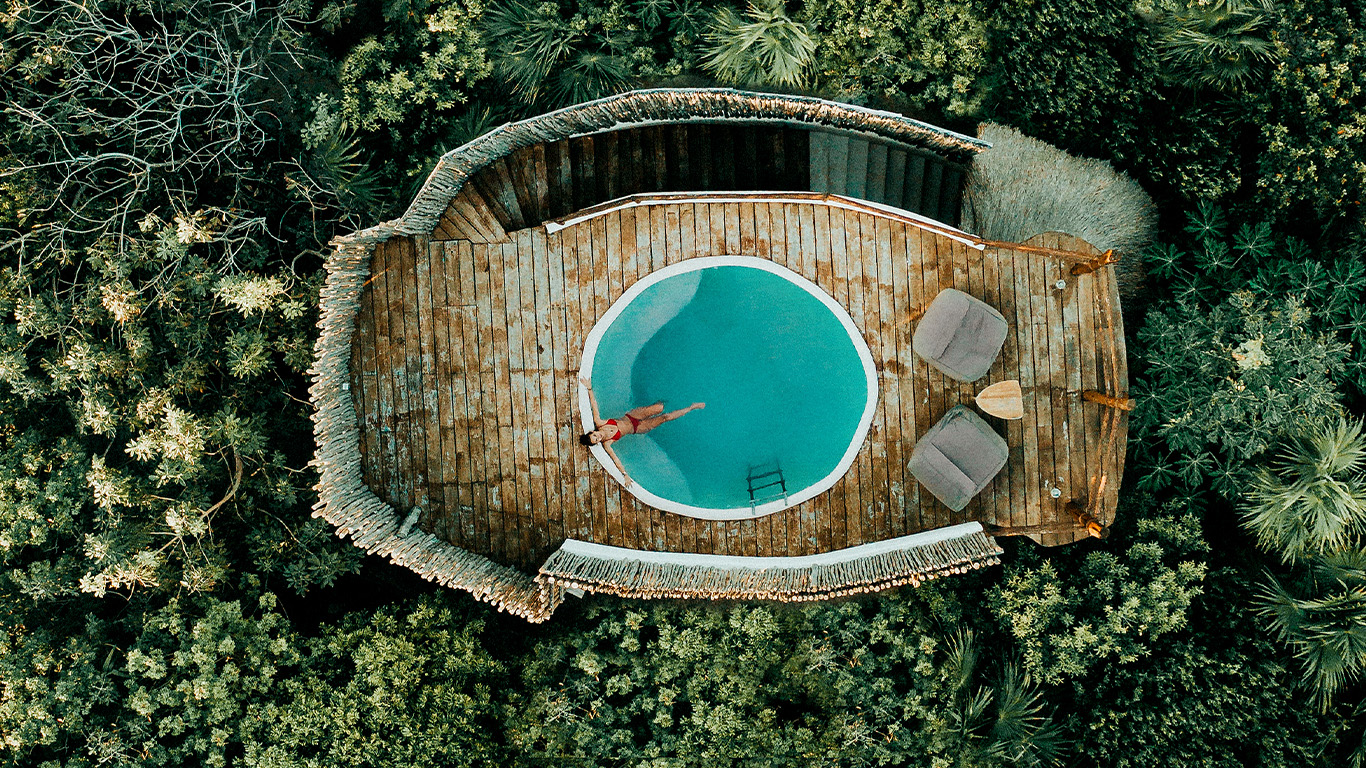 Casitas are curved, organic spaces inspired by Mayan architecture, built with natural materials. Jungle casitas with private or rooftop pools immerse you in greenery and treetops, with king bed and open rain shower. Oceanview casitas open to the Caribbean horizon, with ground‑level or rooftop pools for sea-to-pool living and sunrise or stargazing moments